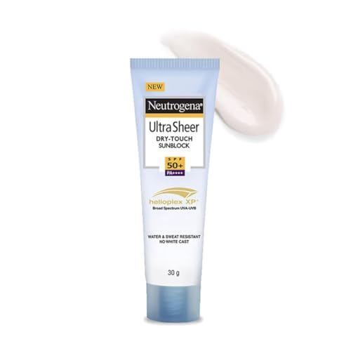 - Neutrogena Ultra Sheer Sunscreen SPF 50+ | Broad Spectrum UVA/UVB | Blue light protect | No White Cast | Water resistant, Ultra light & Non sticky | Oily, Dry & Sensitive Skin | 30 g (Pack of 1) Neutrogena Ultra Sheer Sunscreen SPF 50+ | Broad Spectrum UVA/UVB | Blue light protect | No White Cast | Water resistant, Ultra light & Non sticky | Oily, Dry & Sensitive Skin | 30 g (Pack of 1)
